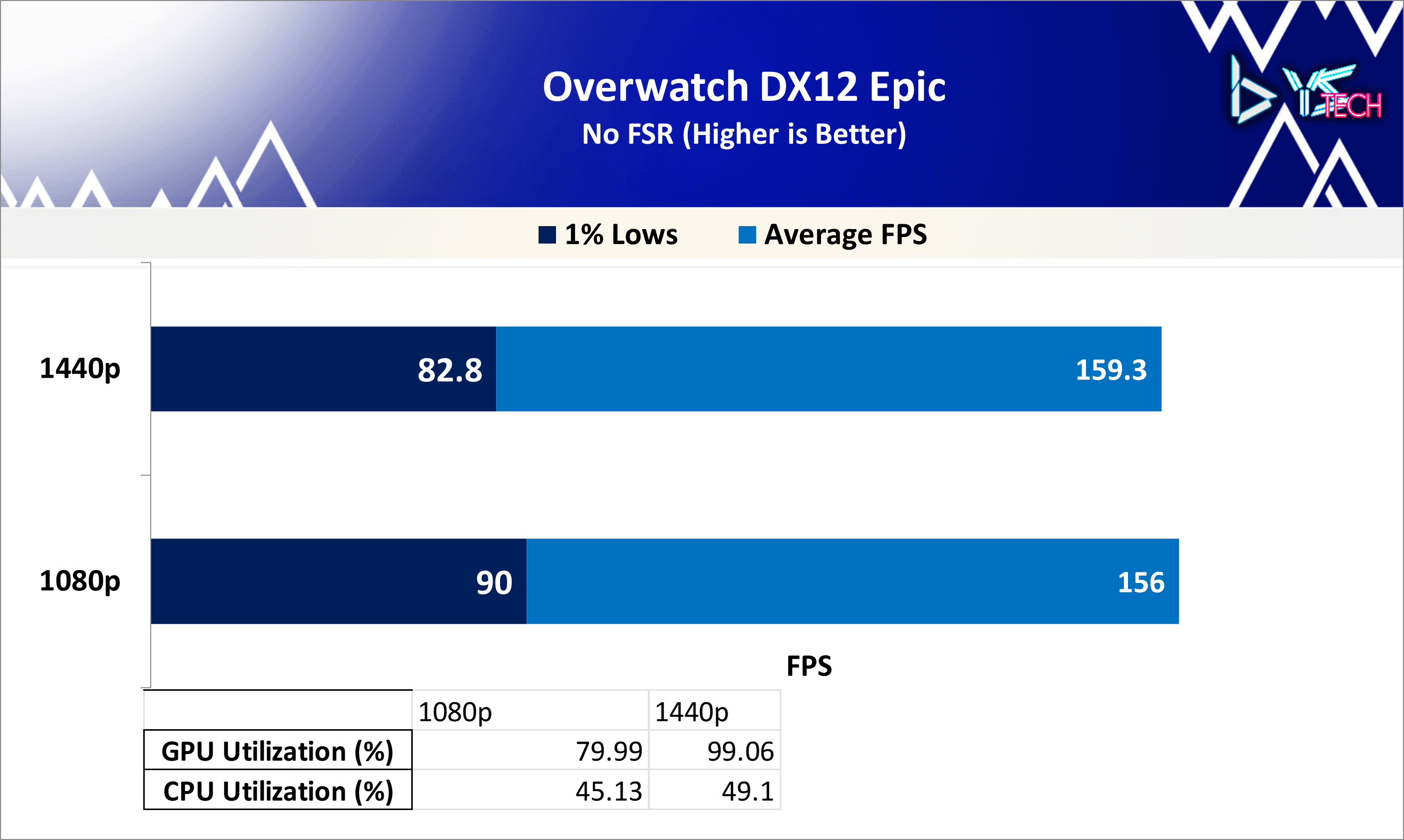 Graphs of the Overall for Average FPS and Average 1% Lows: